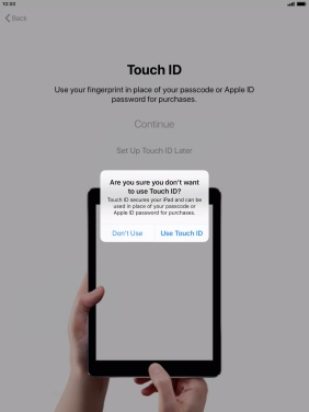 Follow the instructions on the screen to turn on use of Touch ID or press Set Up Touch ID Later.