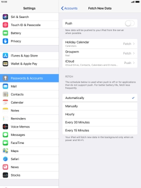 Press the required email account and follow the instructions on the screen to select settings for the specific account.