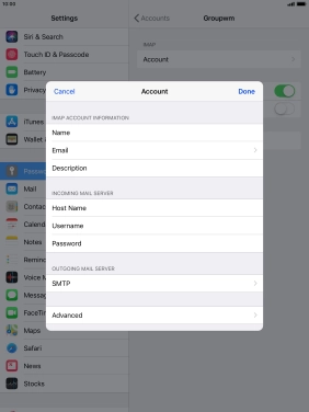 Set up your Apple iPad mini 4 iOS 12.0 for IMAP email