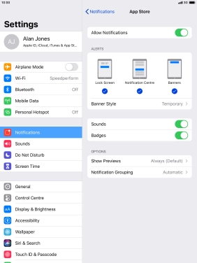 Press the indicator next to "Allow Notifications" to turn notifications for the selected application on or off.