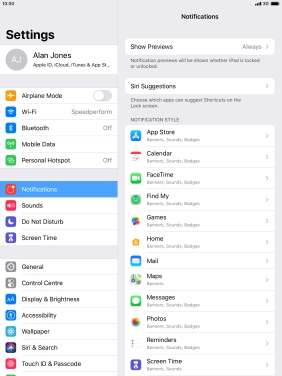 To select notification preview only when your tablet is unlocked, press When Unlocked.