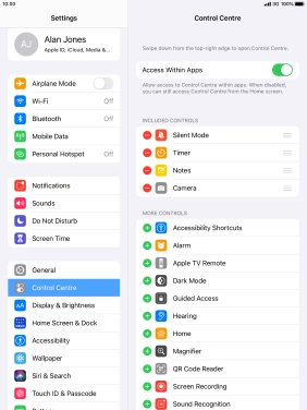 Select settings for Control Centre on your Apple iPad mini 4 iPadOS 14.0