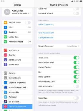 Turn use of lock code on your Apple iPad mini 4 iPadOS 14.0 on or off