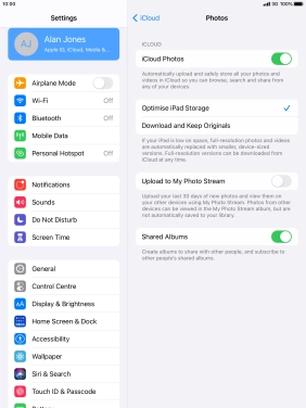 If you turn on the function, all new pictures on your tablet are synchronised with other devices via iCloud.