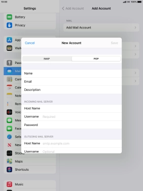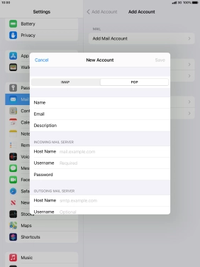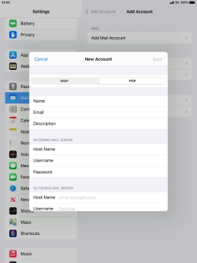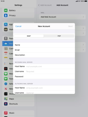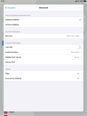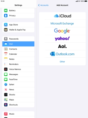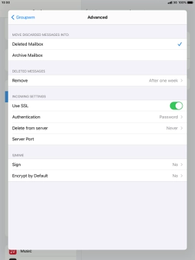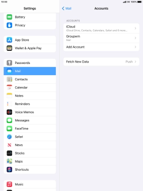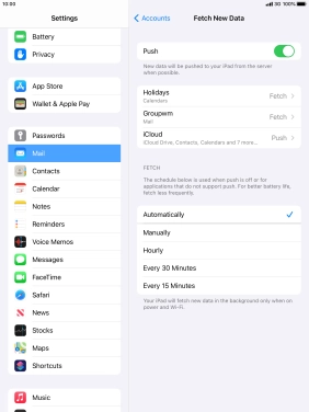 Press the required email account and follow the instructions on the screen to select settings for the specific account.