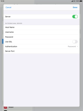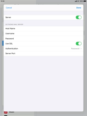 Press Password and key in the password for your email account. Please note that if you're using Vodafone's outgoing server, leave the password field empty.