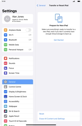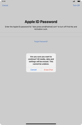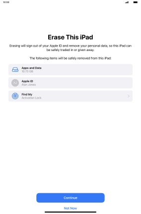 Press Erase iPad. Wait a moment while the factory default settings are restored. Follow the instructions on the screen to set up your tablet and prepare it for use.
