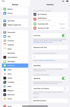 Press the required setting below "YOU CAN BE REACHED BY FACETIME AT".