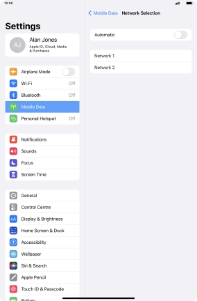 Press the indicator next to "Automatic" to turn automatic network selection on or off.