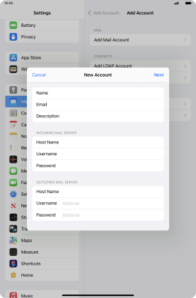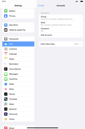 Press the required email account and follow the instructions on the screen to select settings for the specific account.