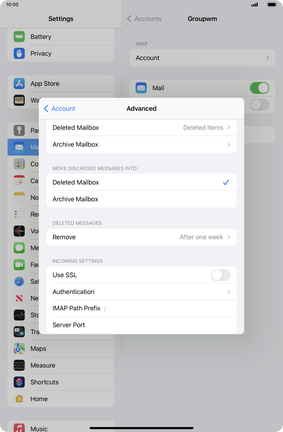 Set up your Apple iPad mini (6th Generation) iPadOS 15.5 for IMAP email