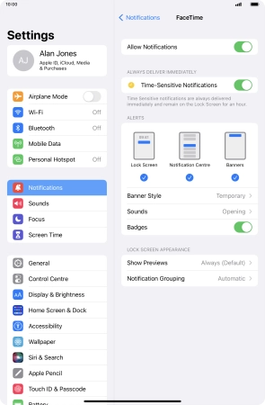 Press the indicator next to "Time-Sensitive Notifications" to turn the function on or off.