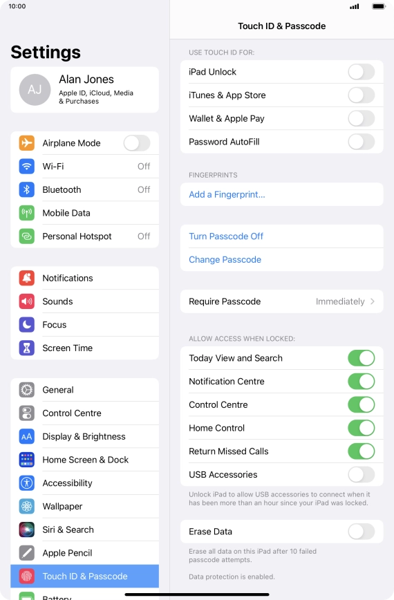 4 Turn off use of lock code
