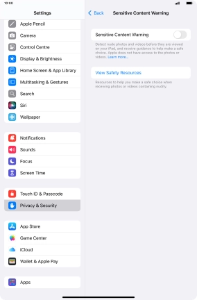 Turn Sensitive Content Warning on your Apple iPad mini (6th Generation) iPadOS 18 on or off