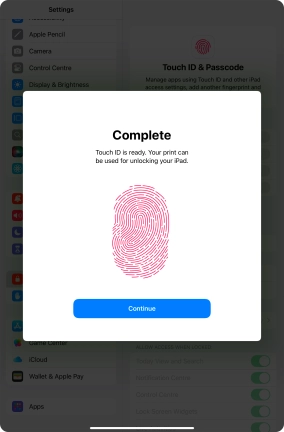You can set your tablet to use your fingerprint as lock code or to authorise iTunes and App Store purchases. To use Touch ID, you need to turn on the lock code.