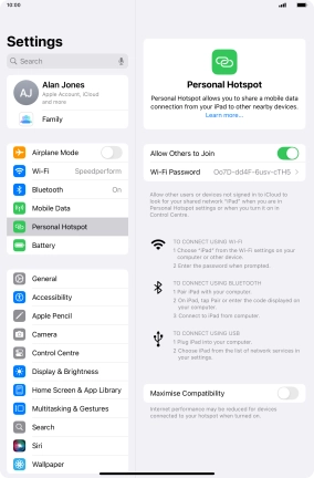 Use your Apple iPad mini (6th Generation) iPadOS 18 as a personal hotspot