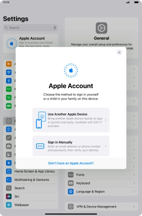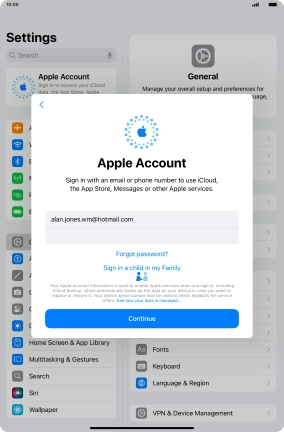 Activate Apple ID on your Apple iPad mini (6th Generation) iPadOS 18