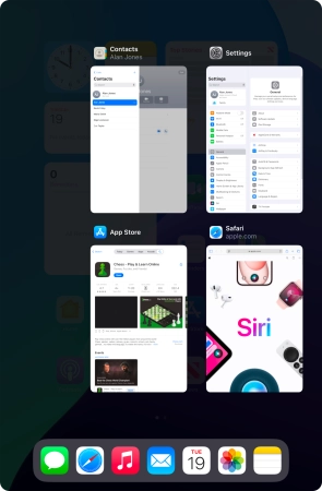 Slide your finger slowly upwards starting from the bottom of the screen until the list of running applications is displayed.