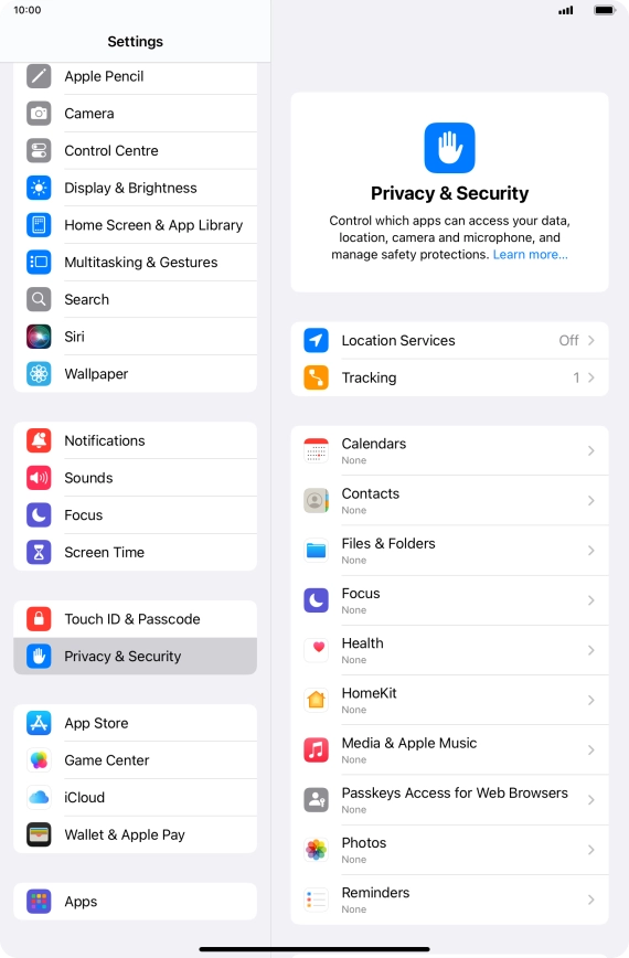 Press Privacy & Security.