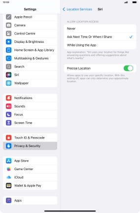 Press the indicator next to "Location Services" to turn the function on or off.