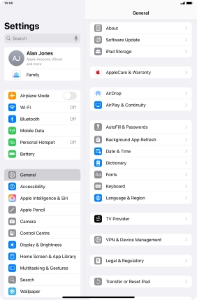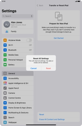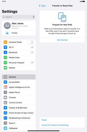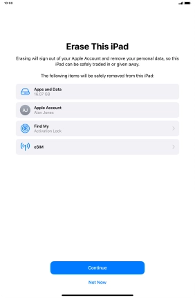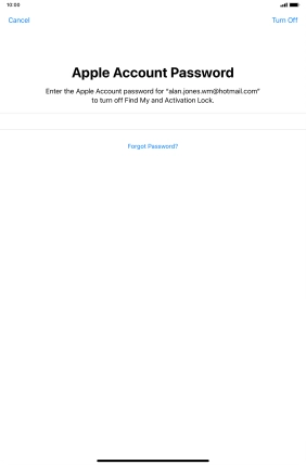 Key in the password for your Apple ID and press Turn Off. Wait a moment while the factory default settings are restored. Follow the instructions on the screen to set up your tablet and prepare it for use.