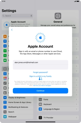 Activate Apple ID on your Apple iPad mini (A17 Pro) iPadOS 18