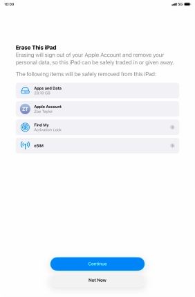 Key in the password for your Apple Account and press Turn Off. Wait a moment while the factory default settings are restored. Follow the instructions on the screen to set up your tablet and prepare it for use.