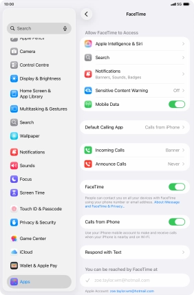 Select FaceTime settings on your Apple iPad mini (A17 Pro) iPadOS 26