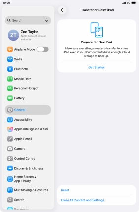 Press Transfer or Reset iPad.
