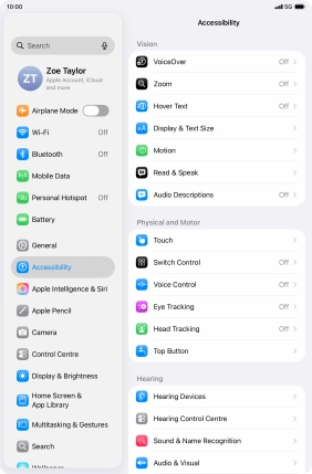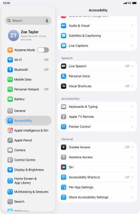 Select accessibility settings on your Apple iPad mini (A17 Pro) iPadOS 26