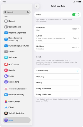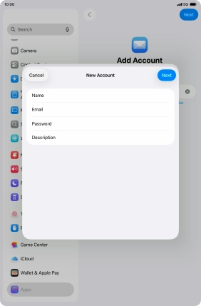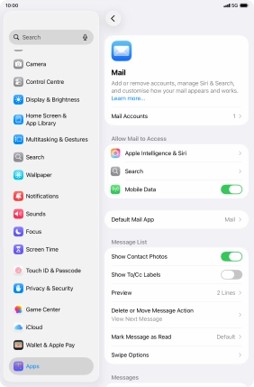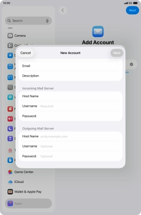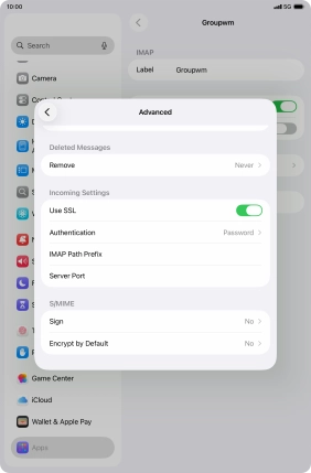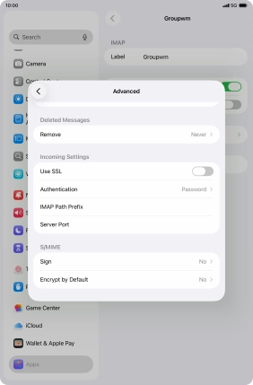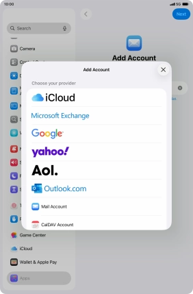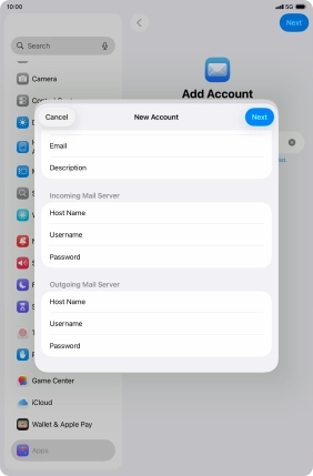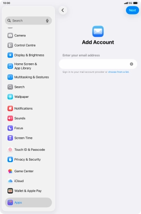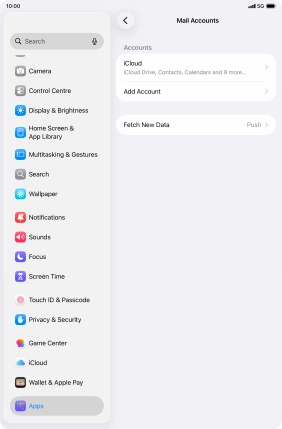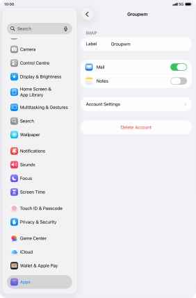 Press the required email account and follow the instructions on the screen to select settings for the specific account.