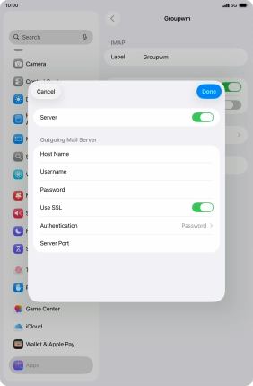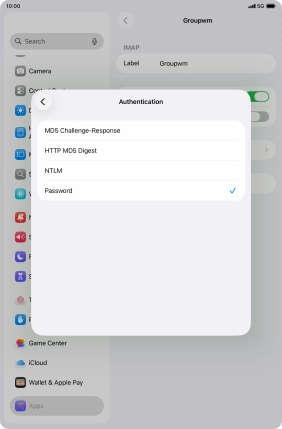 Press Password and key in the password for your email account. Please note that if you're using Vodafone's outgoing server, leave the password field empty.