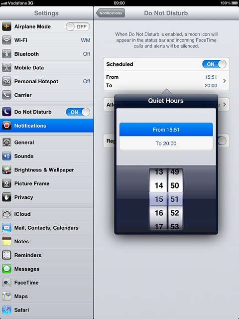 Drag the wheels to specify the period of time in which you don't want to be disturbed.