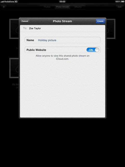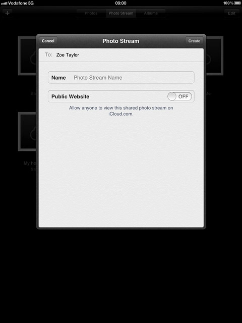 Press Photo Stream Name and key in the required name of the album.