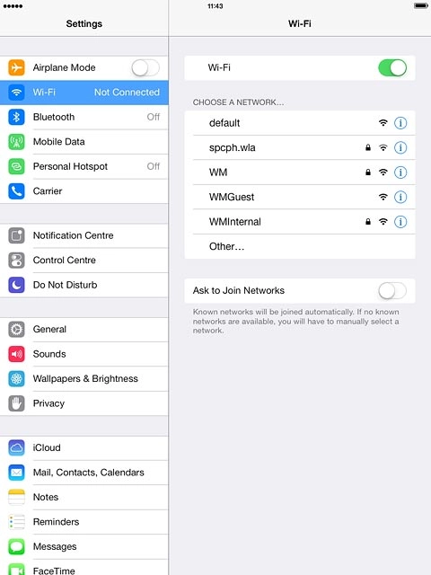 Press the indicator next to "Wi-Fi" until the function is turned on.
