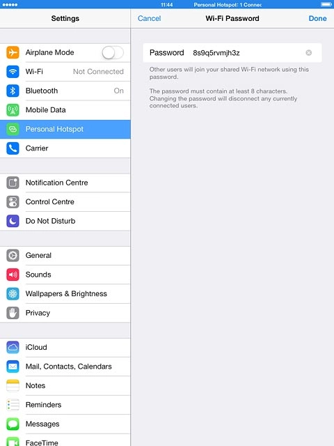 Press the indicator next to"Personal Hotspot" until the function is turned on.