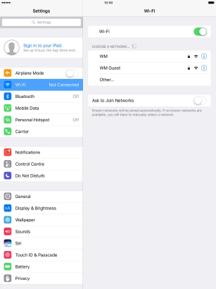 Connect to a Wi-Fi network on your Apple iPad Pro 10.5 iOS 10.3