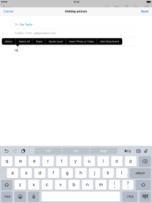 Press the text input field and write the text for your email message.
