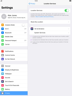 Turn GPS on your Apple iPad Pro 10.5 iOS 11.0 on or off