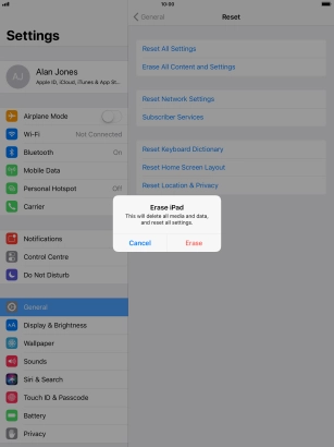 Press Erase All Content and Settings.