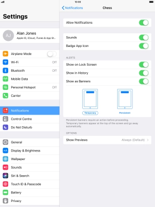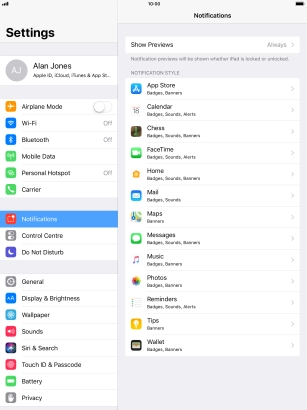 Use notifications on your Apple iPad Pro 10.5 iOS 11.0
