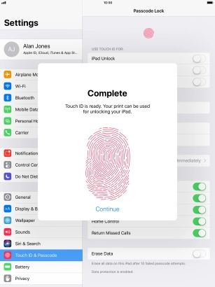 Press Continue. If you haven't previously selected a lock code, key in a code of your own choice twice.