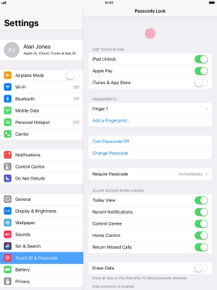 Press the indicator next to "iPad Unlock" to turn the function on or off.
