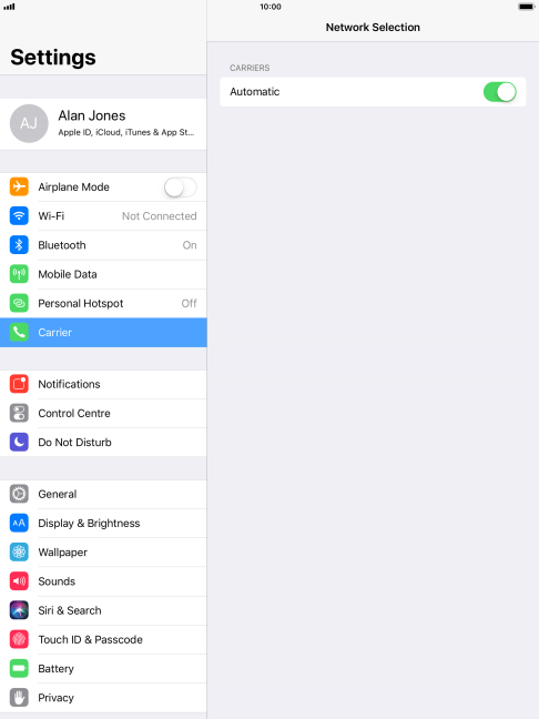 Select network on your Apple iPad Pro 10.5 iOS 11.0