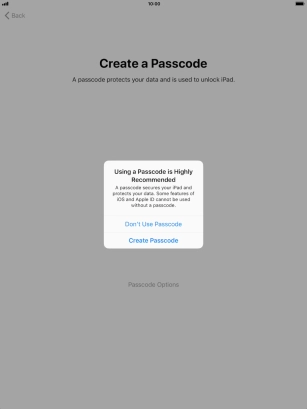 Follow the instructions on the screen to turn on use of lock code or press Don't Use Passcode.