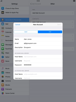 Press Password and key in the password for your email account. Please note that if you're using Vodafone's outgoing server, leave the password field empty.