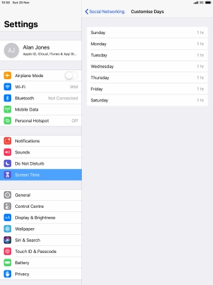 Select Screen Time settings on your Apple iPad Pro 10.5 iOS 12.0
