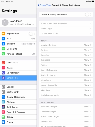 Press the indicator next to "Content & Privacy Restrictions" and follow the instructions on the screen to select settings for content and privacy restrictions.