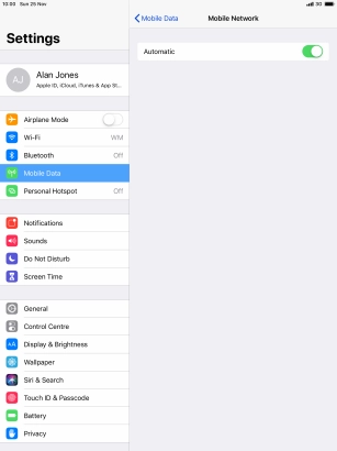 Select network on your Apple iPad Pro 10.5 iOS 12.0