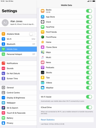 Turn Wi-Fi Assist on your Apple iPad Pro 10.5 iOS 12.0 on or off